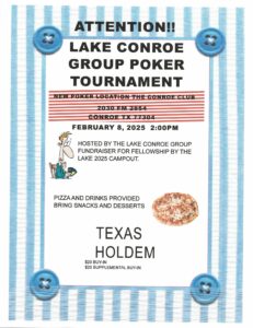 Come play Texas Holdem & help raise funds for the 2025 Fellowship by the Lake!